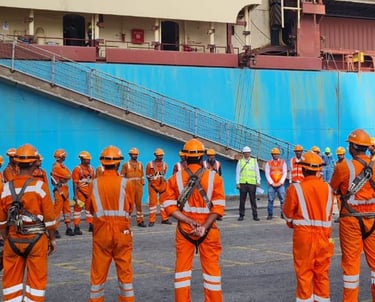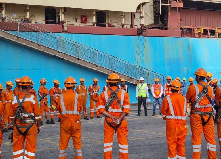 Experienced lashers ensuring safe and efficient cargo securing on vessels.