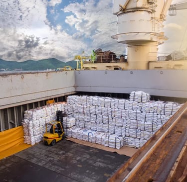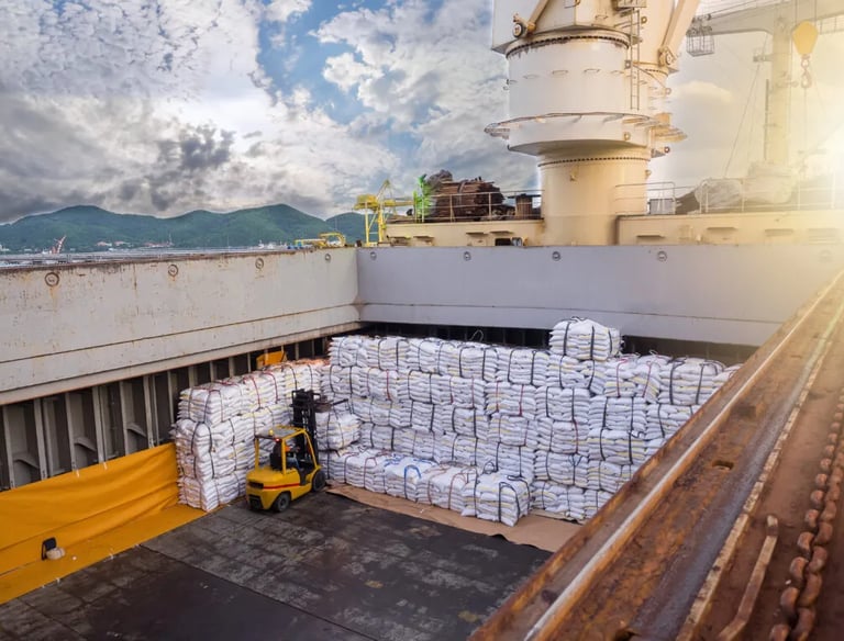 Laborers handling break bulk loading and unloading with care and efficiency.